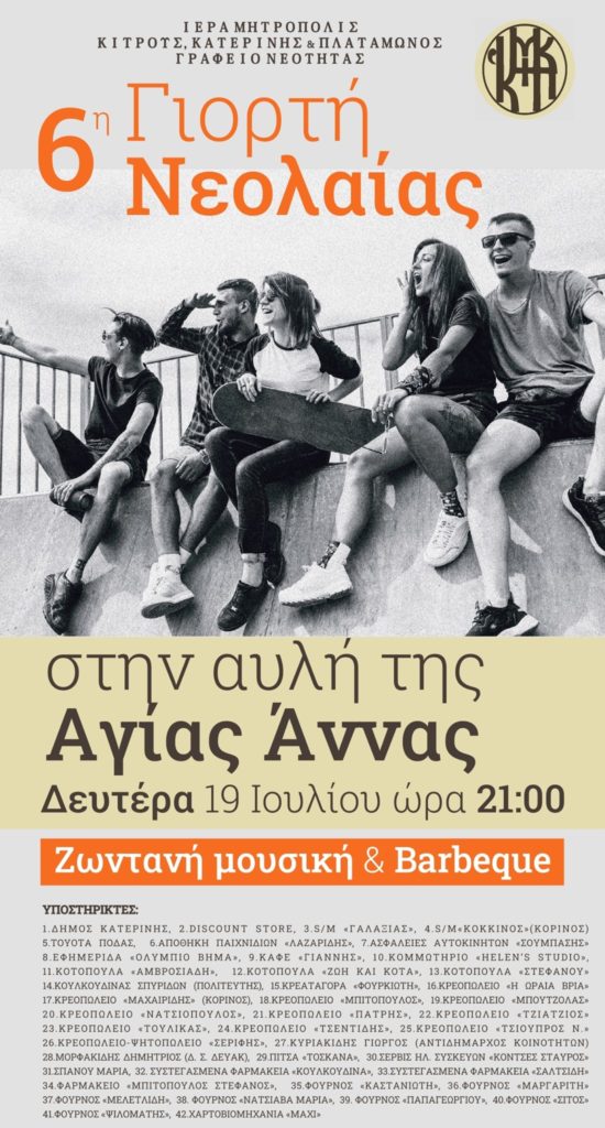 Η εκδήλωση εντάσσεται στις καλοκαιρινές νεανικές δράσεις του Γραφείου Νεότητας, ενώ τη στηρίζουν πολλοί τοπικοί χορηγοί στους οποίους η Ιερά Μητρόπολη Κίτρους, Κατερίνης και Πλαταμώνος απευθύνει θερμές ευχαριστίες.