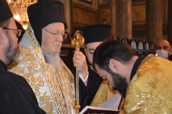 Η Α.Θ. Παναγιότητα ο Οικουμενικός Πατριάρχης κ.κ. Βαρθολομαίος, με το πέρας της χειροθεσίας του νέου Μεγάλου Αρχιμανδρίτη, απηύθυνε λόγια πατρικά και νουθεσίες προς τον π. Αγαθάγγελο, προσφέροντάς του ένα Τίμιο Σταυρό μαζί με το πατριαρχικό πιττάκιο.
