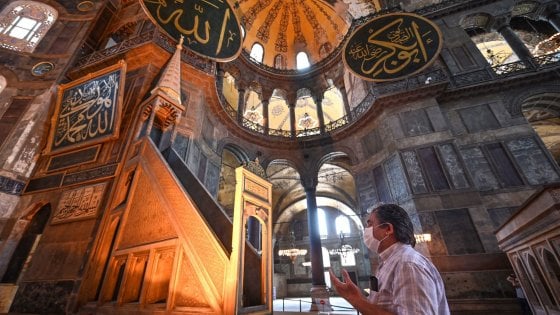 H ιταλική La Repubblica γράφει: «Η Αγία Σοφία δεν είναι πλέον προσβάσιμη στο κοινό. Ούτε είναι πλέον μουσείο. Ούτε, φυσικά, η βυζαντινή βασιλική που ήταν. Γίνεται, από σήμερα (σ.σ. χθες), η Ayasofya, ένα τζαμί. Το τουρκικό Συμβούλιο της Επικρατείας έδωσε το πράσινο φως στην απόφαση που καθιστά το μέρος που για σχεδόν μια χιλιετία ήταν ιερό για τους χριστιανούς, μουσουλμανικό ναό. Και ο αρχηγός του τουρκικού κράτους, Ρετζέπ Ταγίπ Ερντογάν, υπέγραψε το διάταγμα που αποφασίζει το άνοιγμά του για ισλαμική προσευχή.