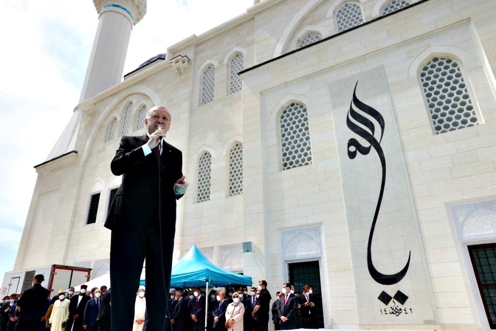 Νέες προκλητικές αναφορές στην Αγία Σοφία περιλάμβανε η ομιλία του Προέδρου της Τουρκίας Ρετζέπ Ταγίπ Ερντογάν κατά την διάρκεια της τελετής των εγκαινίων ενός νέου τζαμιού στην πόλη Ζονγκουλντάκ του Πόντου, την Παρασκευή 4 Ιουνίου 2021.