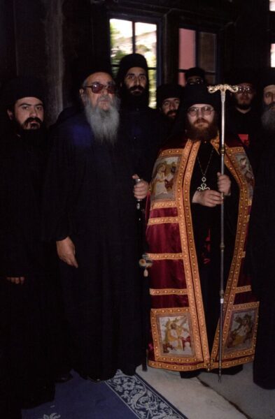 Ο Καθηγούμενος Γέρων Εφραίμ Βατοπαιδινός με τον τότε Πρωτεπιστάτη του Αγίου Όρους Θεόκλητο Διονυσιάτη (+).