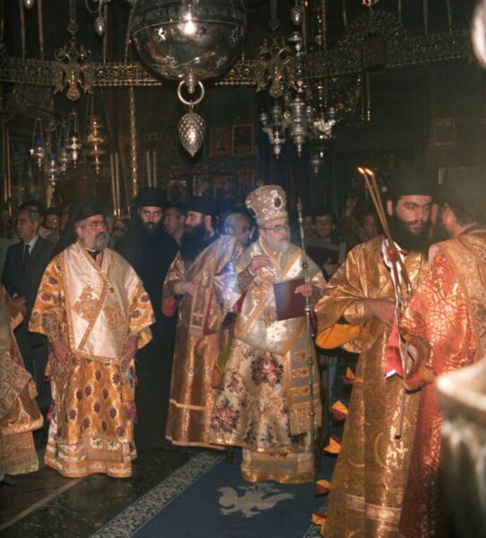 Ο Μητροπολίτης Θεοδωρουπόλεως κ. Γερμανός (+) στον θρόνο κατά την επίσημη υποδοχή του ως εκπροσώπου του Οικουμενικού Πατριάρχου.