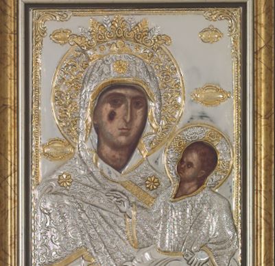 Aντίγραφα της Ιεράς θαυματουργής εικόνας της Παναγίας Εσφαγμένης διατίθενται από την Ιερά Μεγίστη Μονή Βατοπαιδίου.