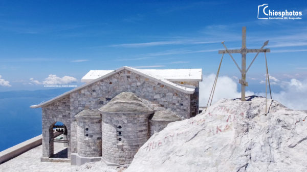 Στην κορυφή είναι χτισμένος ο Ιερός Ναός της Μεταμορφώσεως του Σωτήρος Χριστού. Ο ναός κτίστηκε επί οικουμενικού Πατριάρχου Ιωακείμ Γ’ το 1894 και εγκαινιάστηκε τον Αύγουστο του 1895. Πρόκειται για ένα ξεχωριστό Ναό, ένα πραγματικό θαύμα στα 2033 μ, χτισμένο από πέτρα που δένει αρμονικά με το περιβάλλον. Ο Ναός πανηγυρίζει για το Άγιον Όρος στις 19 Αυγούστου!