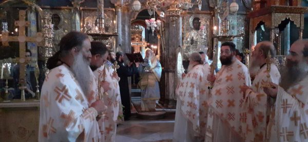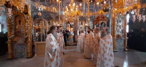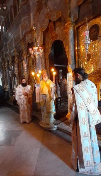 Οι λατρευτικές εκδηλώσεις ξεκίνησαν με Δοξολογία επί τη αφίξη του Μητροπολίτου, προσφώνηση του αγίου Καθηγουμένου και αντιφώνηση από τον Σεβασμιώτατο.