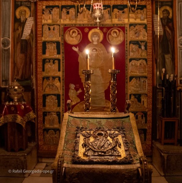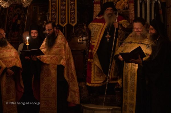 Αργότερα, εκκίνησε ο Πανηγυρικός Εσπερινός στο Καθολικό της Μονής και ακολούθησε η ολονύχτια Αγρυπνία.