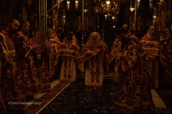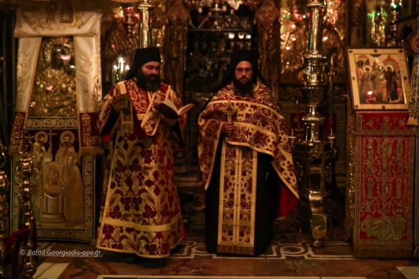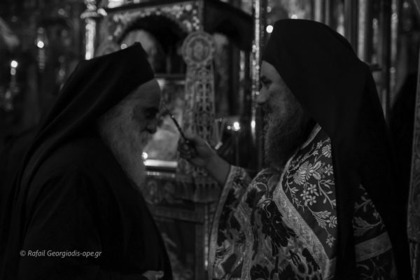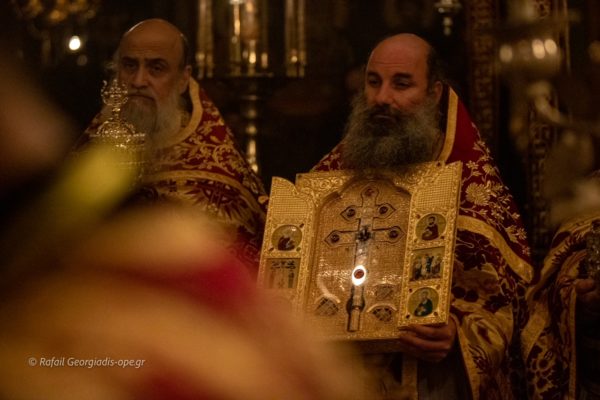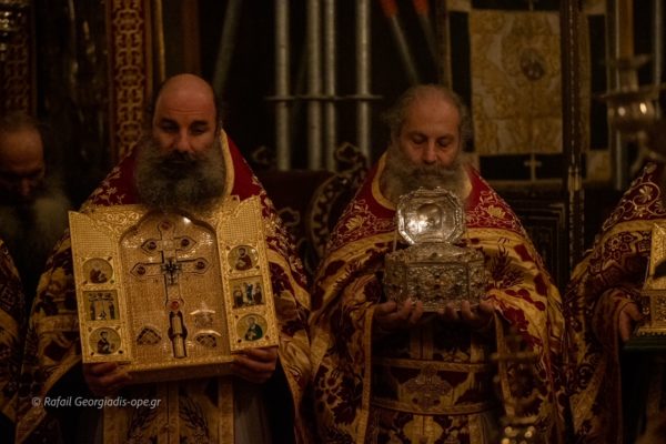 Των ιερών ακολουθιών προεξήρχε ο Καθηγούμενος της Ιεράς Μονής Γέροντας Εφραίμ ο οποίος κατά τη διάρκεια της Ιεράς αγρυπνίας ανέγνωσε μπροστά στην Ιερά Εικόνα της Παναγίας ειδική ευχή για την αντιμετώπιση της πανδημίας.