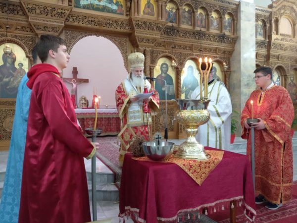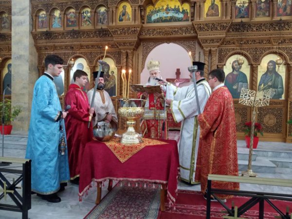 Η ακολουθία του Μεγάλου Αγιασμού τελέστηκε εντός του ναού.