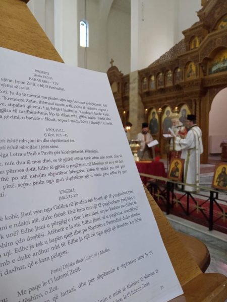 Στον Ιερό Καθεδρικό Ναό της Αναστάσεως Τιράνων, των ιερών ακολουθιών και της Θείας Λειτουργίας προεξήρχε ο Μακαριώτατος Αρχιεπίσκοπος Τιράνων, Δυρραχίου και πάσης Αλβανίας κ.κ. Αναστάσιος συλλειτουργούντων του Σεβ. Μητροπολίτου Αμαντίας κ. Ναθαναήλ και του Θεοφ. Επισκόπου Βύλιδος κ. Άστιου, παρουσία πιστών και τηρουμένων των μέτρων της φυσικής απόστασης και χρήσης μάσκας.