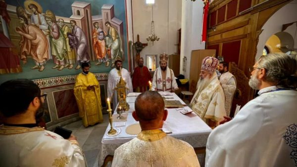 Της Θείας Λειτουργίας που τελέστηκε στον Καθεδρικό Ναό των Αγίων Αποστόλων Παύλου και Άστιου προεξήρχε ο Σεβασμιώτατος συλλειτουργούντος του εορτάζοντα Θεοφιλεστάτου Επισκόπου Βίλιδος κ. Άστιου και κληρικών της Εκκλησίας της Αλβανίας.
