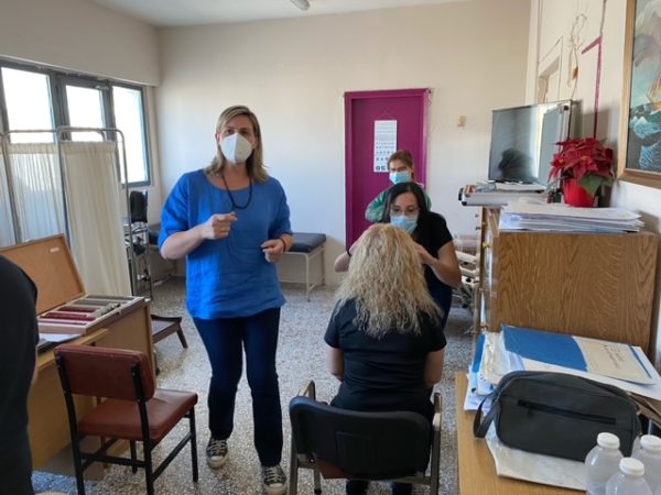 Έτσι το κλιμάκιο λίγο πριν την 10η πρωινή, πέρασε την κεντρική πύλη των Γυναικείων Φυλακών Κορυδαλλού, ώστε να προσφέρει τις υπηρεσίες του, σε επίπεδο οπτικών εξετάσεων στις γυναίκες κρατούμενες, αλλά και τους λιγοστούς άνδρες κρατούμενους. Με τα πιστοποιητικά εμβολιασμού, τις βεβαιώσεις νόσησης, καθώς και τα αρνητικά Rabit Test στα χεριά η αντιπροσωπία του ΚΕΣΟ και της ΠΕΟΟ, που αποτελούσαν: η Διευθύντρια του Μαίρη Πίνη η ΓΓ του ΔΣ Μαρία Τάταρη, η οφθαλμίατρος κα Αναστασία Σερέπα, οι οπτικοί Γιώργος Κλάδος, Γεράσιμος Σισμάνης, Γεώργιος Γαλάτης, Παναγιώτα Μύλοβα, Μαρία Παπουτσή, οι Κοινωνικές Λειτουργοί του ΚΕΣΟ Λένα Παγώνη και Ειρήνη Χαιρέτη και ο Κων. Σαλεβουράκης, προσήλθαν στις 9.30 π.μ στη Κεντρική Πύλη των Φυλακών Κορυδαλλού για τις σχετικές διαπιστεύσεις, αλλά και τον έλεγχο των πανάκριβων μηχανημάτων, που έφεραν μαζί τους οι οπτικοί, για τις απαραίτητες εξετάσεις.