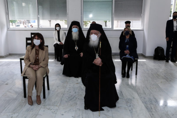 Την Πρόεδρο της Δημοκρατίας υποδέχθηκε στην είσοδο της Δομής ο Μακαριώτατος Αρχιεπίσκοπος Αθηνών και πάσης Ελλάδος κ. Ιερώνυμος, τον οποίο πλαισίωναν ο πρόεδρος της «ΣΥΝΥΠΑΡΞΙΣ» Μητροπολίτης Ιλίου, Αχαρνών και Πετρουπόλεως κ. Αθηναγόρας και ο Μητροπολίτης Νικαίας κ. Αλέξιος.
