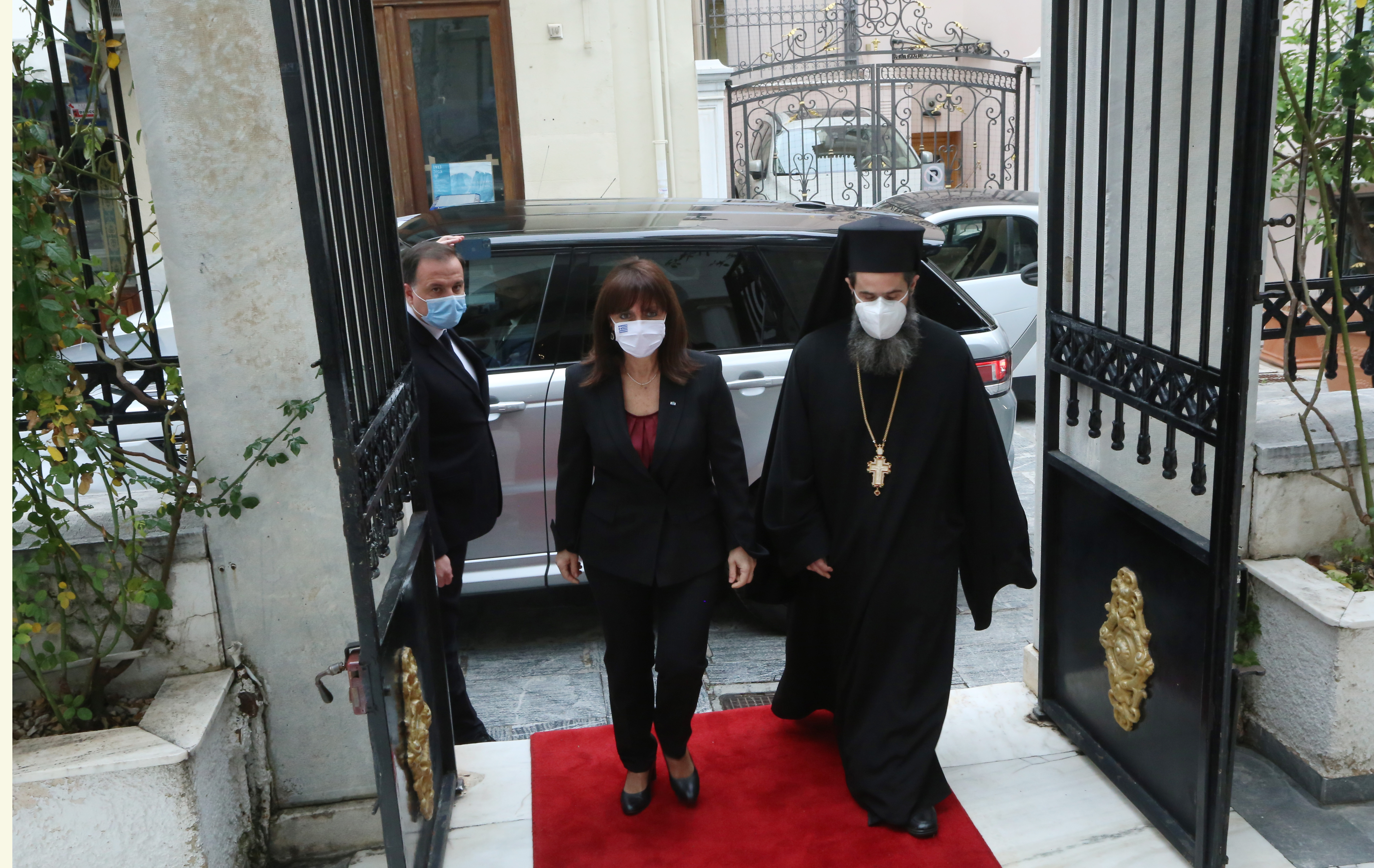 Έφθασε στις 11 το πρωί της 26ης Ιανουαρίου στην Αρχιεπισκοπή Αθηνών, η Πρόεδρος της Δημοκρατίας κα. Κατερίνα Σακελλαροπούλου, πραγματοποιώντας επίσκεψη στον Μακαριώτατο Αρχιεπίσκοπο Αθηνών και Πάσης Ελλάδος κ.κ. Ιερώνυμο. Την υποδέχθηκε ο Πρωτοσύγκελλος Αρχιμανδρίτης π. Βαρνάβας. Η συνάντηση έλαβε χώρα στον απόηχο της πρόσφατης πληροφορίας για το ανεπίσημο «δείπνο συμφιλίωσης» το οποίο έλαβε χώρα, πριν λίγες ημέρες, μεταξύ του Μακαριωτάτου Αρχιεπισκόπου και της Προέδρου της Δημοκρατίας, διότι, σύμφωνα με διαρροές του προηγουμένου διαστήματος, οι μεταξύ τους σχέσεις είχαν ψυχρανθεί μετά τα όσα έλαβαν χώρα στην πρωτοχρονιάτικη λειτουργία στη Μητρόπολη Αθηνών, όταν η κα. Σακελλαροπούλου δεν είχε ασπαστεί τον σταυρό.