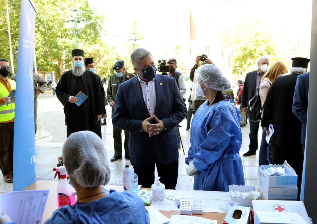 Στη Μητρόπολη Αθηνών μετέβη σήμερα ο Περιφερειάρχης Αττικής Γ. Πατούλης, όπου διενεργήθηκαν διαγνωστικοί έλεγχοι με rapid test στους ιερείς και το προσωπικό του ναού στο πλαίσιο της σχετικής δράσης που ξεκίνησε χθες και προβλέπει την πραγματοποίηση ελέγχων σε ιερείς και στο προσωπικό των Ιερών Ναών της Αρχιεπισκοπής Αθηνών από τα κλιμάκια της Περιφέρειας και του Ιατρικού Συλλόγου Αθηνών. Η πρωτοβουλία ήταν του Περιφερειάρχη Αττικής Γ. Πατούλη και σε συνεννόηση με τον Αρχιεπίσκοπο Αθηνών και Πάσης Ελλάδος κ. Ιερώνυμο.