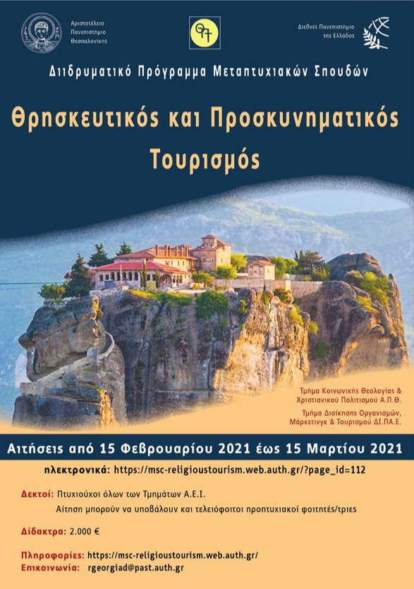 Ἐνημέρωσις περί νέου Διιδρυματικοῦ Προγράμματος Μεταπτυχιακῶν Σπουδῶν μετ’ εἰδικεύσεως εἰς τόν Θρησκευτικόν καί Προσκυνηματικόν Τουρισμόν»