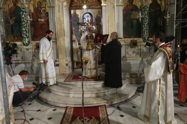 Μετά την απόλυση ο Μακαριώτατος ευχήθηκε στους πιστούς “Χρόνια Πολλά”.