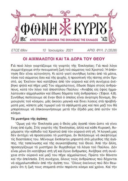 ΔΙΑΒΑΣΤΕ ΔΙΑΔΙΚΤΥΑΚΑ τη “Φωνή Κυρίου” της Αποστολικής Διακονίας της Εκκλησίας της Ελλάδος – ΚΥΡΙΑΚΗ ΜΕΤΑ ΤΑ ΦΩΤΑ – της 10ης Ιανουαρίου 2021.