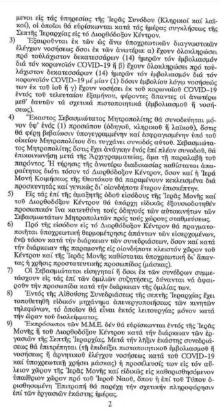 • Κάθε Μητροπολίτης θα συνοδεύεται μόνο από ένα πρόσωπο (οδηγό, κληρικό ή λαϊκό), το οποίο θα φέρει βεβαίωση υπογεγραμμένη και σφραγισμένη από τον οικείο Μητροπολίτη ότι τυγχάνει συνοδός του.