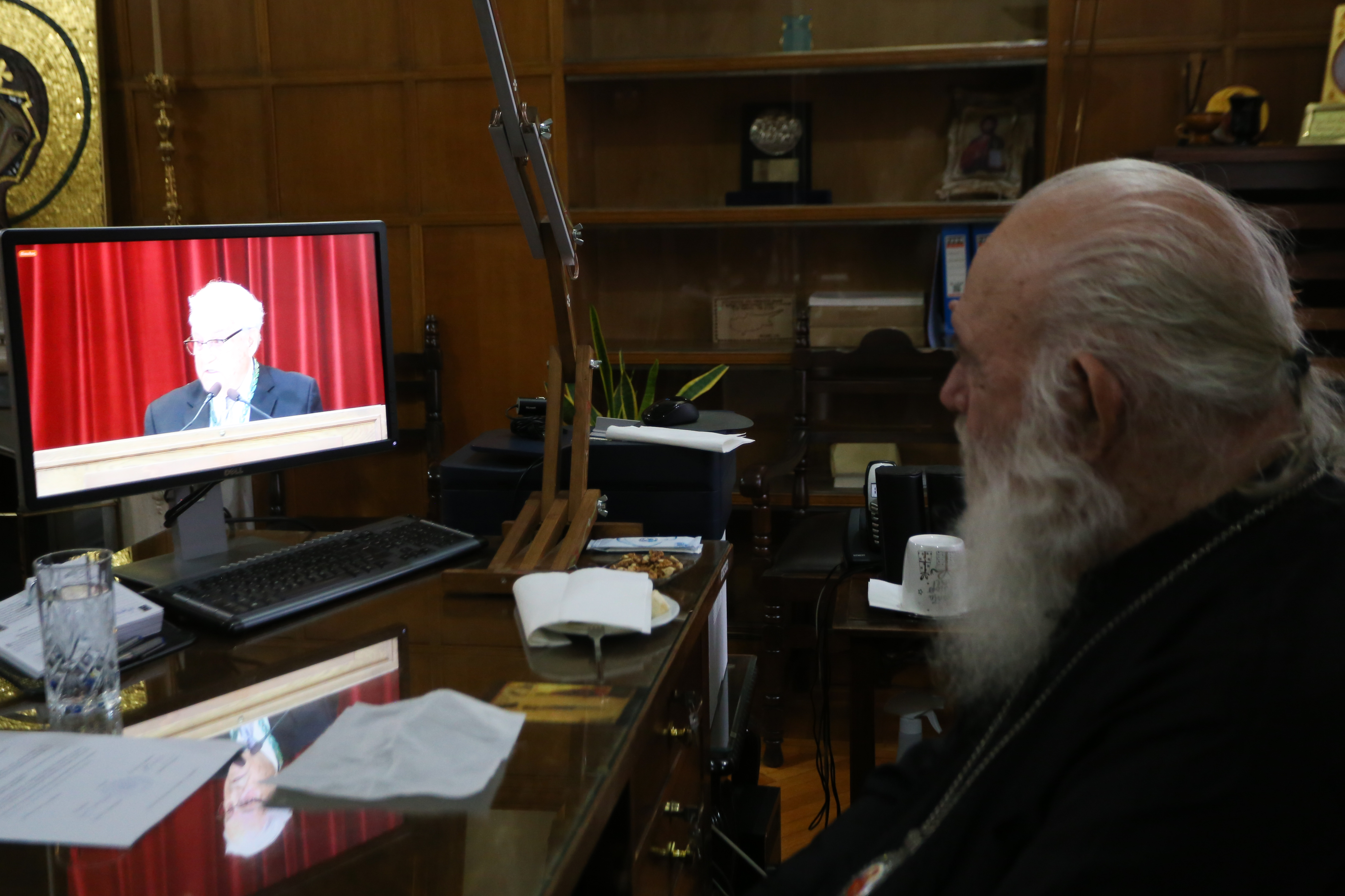 Ο Αρχιεπίσκοπος Αθηνών και Πάσης Ελλάδος κ.κ. Ιερώνυμος παρακολούθησε τη Διαδικτυακή Πανηγυρική Συνεδρία της Ακαδημίας Αθηνών για τον εορτασμό της 200ής επετείου από την Εθνική Παλιγγενεσία, την Τρίτη 23 Μαρτίου 2021. Παρουσία του Προέδρου της Ακαδημίας Αθηνών, Καθηγητή Λουκά Χριστοφόρου, ο Ακαδημαϊκός Καθηγητής Εμμανουήλ Ρούκουνας εκφώνησε πανηγυρικό λόγο με θέμα: «Η Διπλωματία στην Υπηρεσία της Πατρίδος».