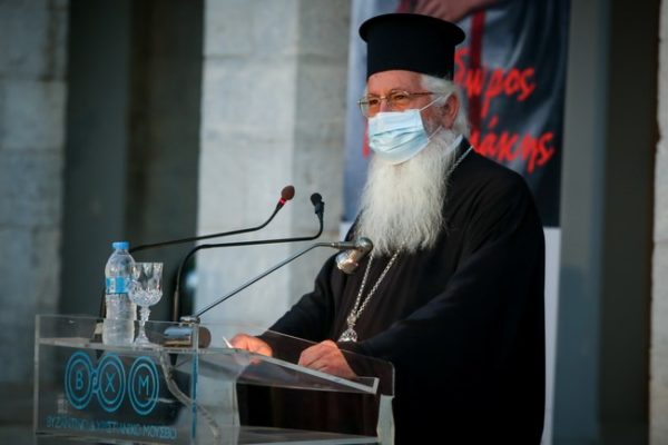 Ο Αρχιεπίσκοπος στον χαιρετισμό του, μεταξύ άλλων, ανέφερε: «Ο Θεόδωρος Βρυζάκης, ο κατ’ εξοχήν ζωγράφος της Ελληνικής Επανάστασης, αποτύπωσε χαρακτηριστικά ιστορικά στιγμιότυπα του αγώνα με σεβασμό στα γεγονότα και στους πρωταγωνιστές. Την ίδια στιγμή, μαζί με την ιστορικότητα των έργων του, καθίσταται διάχυτο και ευδιάκριτο ένα αίσθημα, το οποίο διεγείρει την ψυχή του θεατή. Ένα αίσθημα αγάπης και τιμής προς τους προγόνους μας και την πατρίδα μας, ένα αίσθημα για τα γεγονότα, που καθίσταται, με τρόπο οριστικό, δομικό κομμάτι της εθνικής συλλογικής μας συνείδησης».