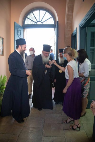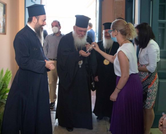 Ως ενθύμια επιδόθηκαν στον Μακαριώτατο Αρχιεπίσκοπο Αθηνών μία εικόνα τής Αγίας Τριάδος, στην οποία η Σχολή είναι αφιερωμένη, καθώς και αργυρό αντίγραφο τής σφραγίδος τής Σχολής.