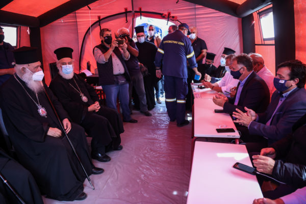 «Και στην περίπτωση αυτή όλοι μαζί θα προχωρήσουμε» ήταν το αισιόδοξο μήνυμα του Μακαριωτάτου Αρχιεπισκόπου Αθηνών και πάσης Ελλάδος κ.κ. Ιερωνύμου μετά την επίσκεψη-ενημέρωσή του από το Συντονιστικό Κέντρο Επιχειρήσεων της Πυροσβεστικής στο Αρκαλοχώρι της Κρήτης, που επλήγη από τον ισχυρό σεισμό της Δευτέρας, 27ης Σεπτεμβρίου.