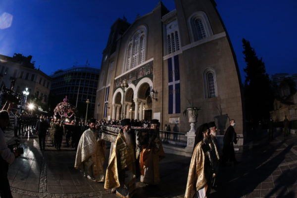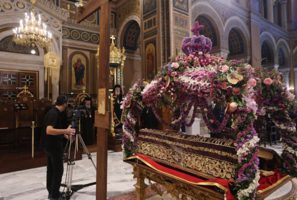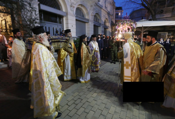 Η περιφορά του Επιταφίου έγινε στον προαύλιο χώρο του Καθεδρικού Ι. Ναού, όπως προβλέπουν τα μέτρα πρόληψης που έχει λάβει η Πολιτεία για την αντιμετώπιση της πανδημίας, ενώ οι πιστοί συμμετείχαν με την προσήκουσα ευλάβεια τόσο εντός του Ι. Ναού όσο και στην πλατεία Μητροπόλεως.