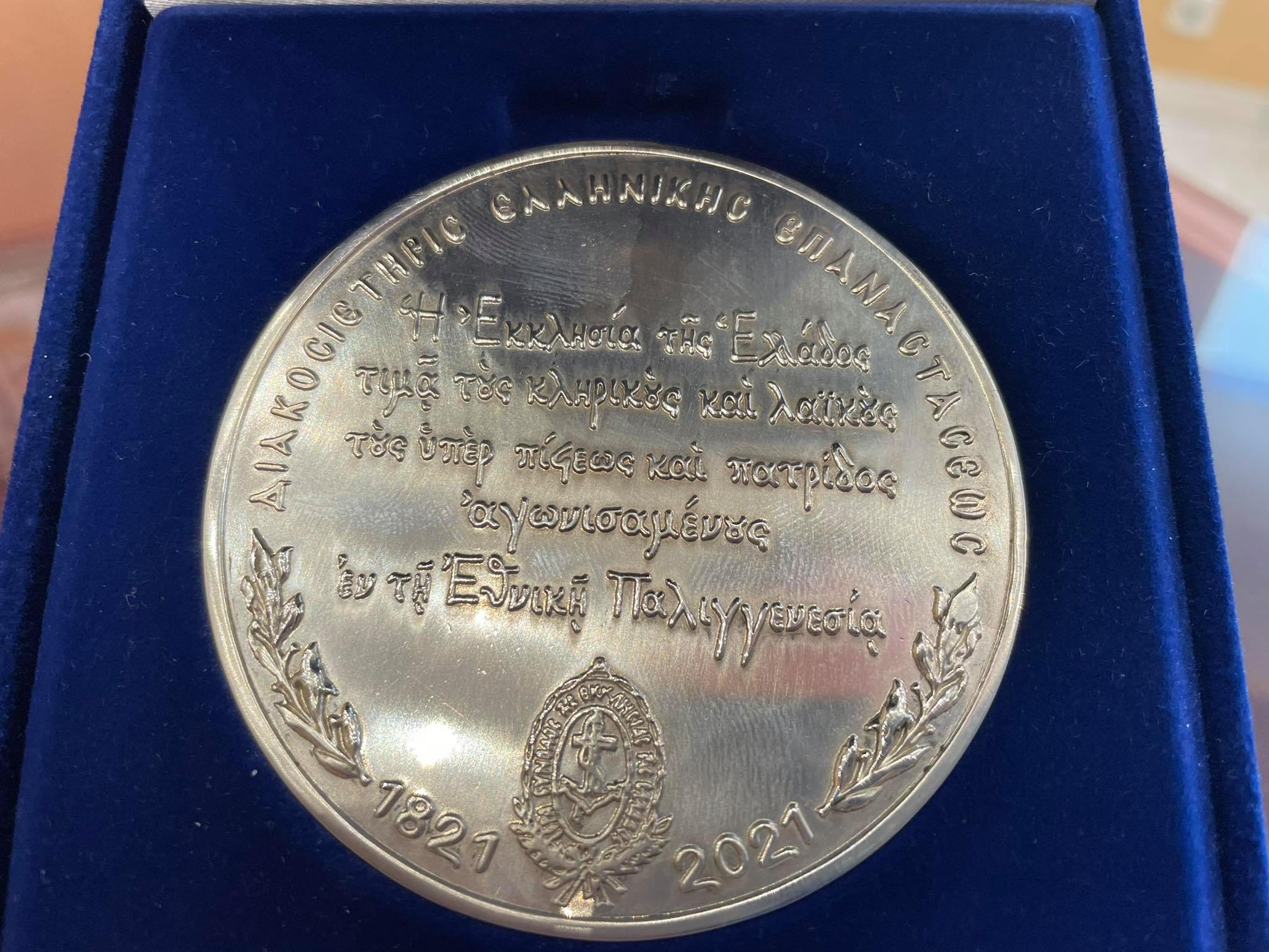 Ο Αρχιεπίσκοπος Αθηνών και Πάσης Ελλάδος κ.κ. Ιερώνυμος, εξέφρασε την βαθιά συγκίνηση της Ιεραρχίας για την πραγματοποίηση αυτής της ξεχωριστής συμβολικής τελετής. Το μετάλλιο φιλοτέχνησε ο χρυσόχοϊκός οίκος Μιχαλάς και θα απονέμεται σε πρόσωπα και φορείς ως συμβολικό αντίδωρο για την προσφορά τους στο έθνος.