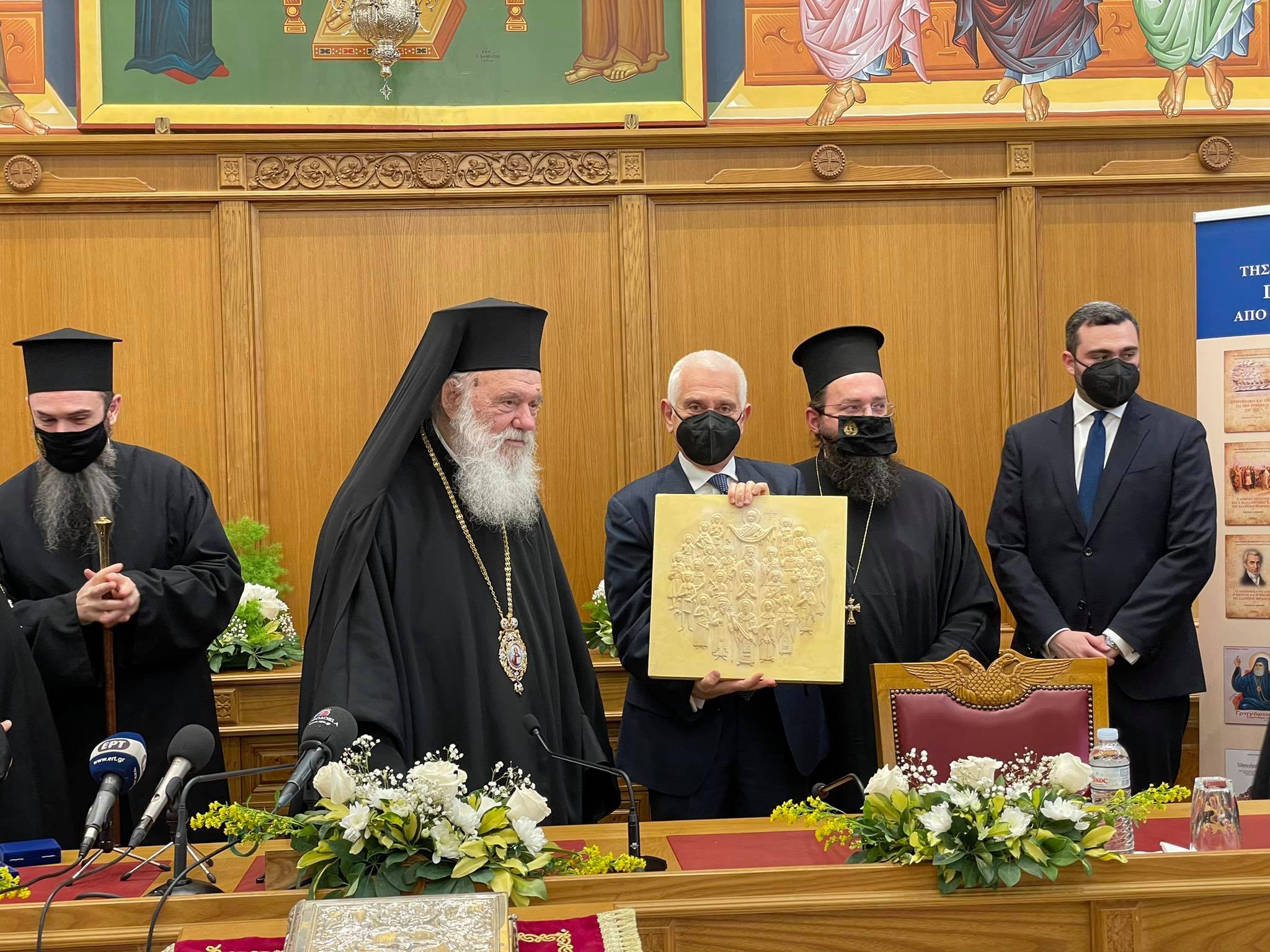 Εκφράζω σήμερα την βαθειά συγκίνηση των μελών της Ιεραρχίας της Εκκλησίας της Ελλάδος για την πραγματοποίηση αυτής της ξεχωριστής, συμβολικής τελετής.