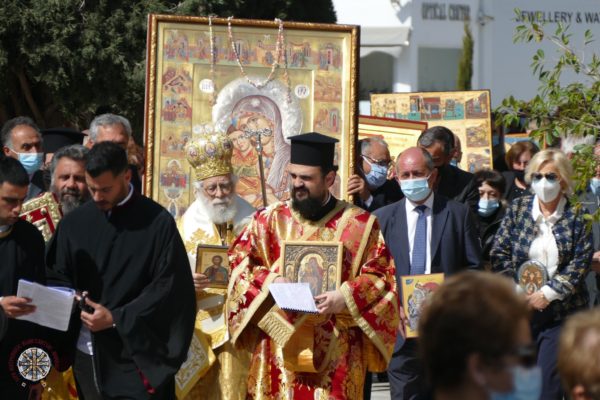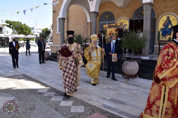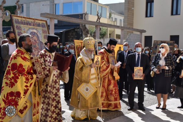 Μετά το πέρας της Θείας Λειτουργίας ο Πανιερώτατος αναφέρθηκε εν συντομία στο ιστορικό γεγονός της αναστηλώσεως των ιερών εικόνων και ακολούθησε η λιτάνευση των ιερών εικόνων γύρω από τον ναό σύμφωνα με την τυπική διάταξη της ημέρας.