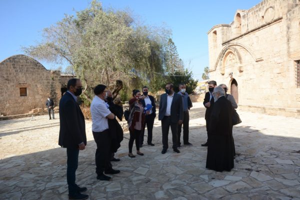 Τα έργα αποκατάστασης και μετατροπής του Μεσαιωνικού Μοναστηριού της Αγίας Νάπας σε Αρχαιολογικό και Μουσειακό χώρο, επιθεώρησε σήμερα ο Πανιερώτατος Μητροπολίτης Κωνσταντίας και Αμμοχώστου κ. Βασίλειος μαζί με τον Υπουργό Μεταφορών, Συγκοινωνιών και ΄Εργων της Κύπρου κ. Γιάννη Καρούσο, τον δήμαρχο Αγίας Νάπας Χρίστο Ζαννέτο και τη Διευθύντρια του Τμήματος Αρχαιοτήτων κ. Μαρίνα Ιερωνυμίδου.