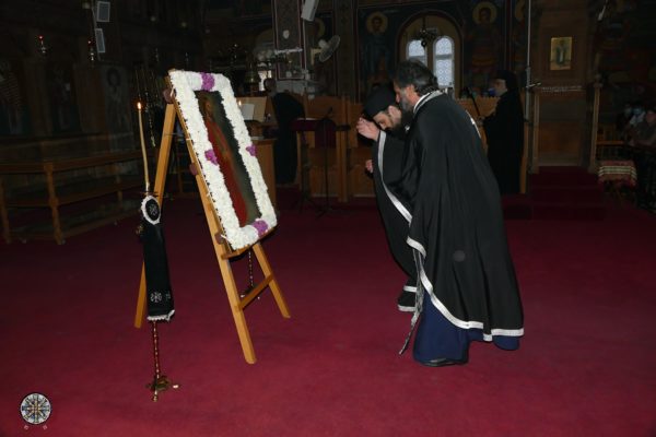 Τους ύμνους απέδωσαν με ιεροπρέπεια ο πρωτοψάλτης του ναού Κώστας Ψάλτης και ο ιεροψάλτης Παρασκευάς Νικολάου.