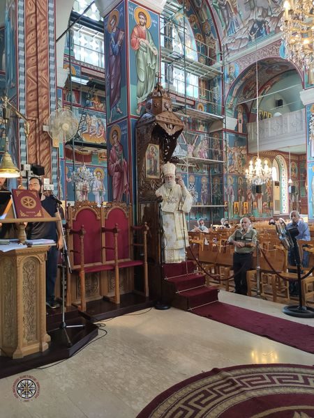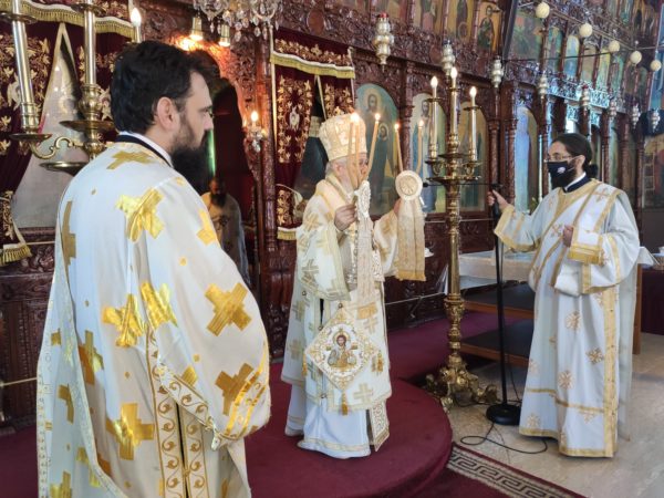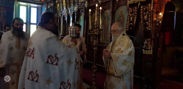Στο ιερό βήμα παρέστησαν συμπροσευχόμενοι οι εφησυχάζοντες αιδ/τοι Πρωτ. Ιωάννης Χρυσοστόμου και Οικον. Δημήτριος Ταλιαδώρος.