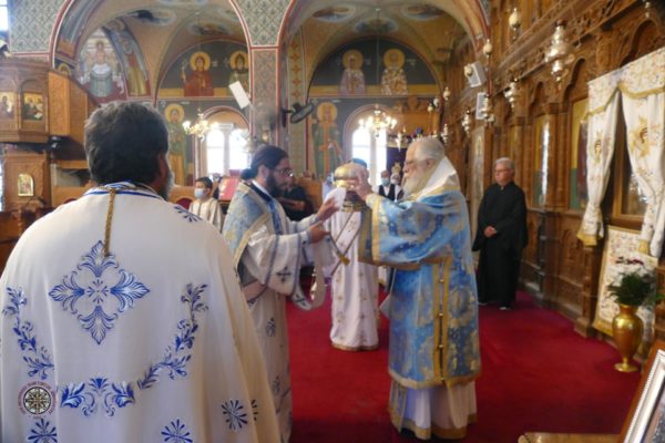 Ο Πανιερώτατος προέστη της Θείας Λειτουργίας στον Μητροπολιτικό Ναό του Αγίου Γεωργίου στο Παραλίμνι πλαισιούμενος από τον πρωτοσύγκελλό του πανοσιολογώτατο Αρχιμ. Αυγουστίνο Κκαρά, τον ιερατικώς προϊστάμενο και Διευθυντή του ιδιαίτερου του Γραφείου, αιδεσιμολογιώτατο Πρωτ. Ηρακλείδιο Ξιούρο και τους ιερολογιωτάτους διακόνους Επιφάνιο Παπαντωνίου και Μάριο Ανδρέου.