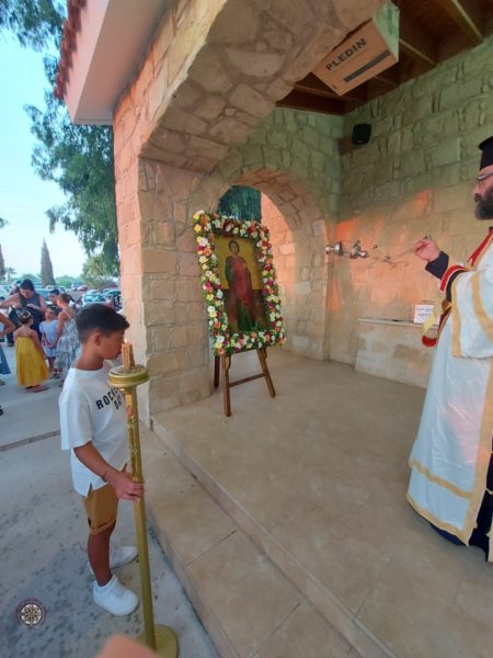 Ακολούθησε η λιτάνευση της ιεράς εικόνας γύρω από το ναό και η δέηση κατά τα ειωθότα στην κυπριακή Εκκλησία μετά το πέρας της οποίας οι πιστοί ασπάζονται την ιερά εικόνα ενώ τινές των εορταζόντων κρατώντας καπνιστομέρεγχο ρένουν τα χέρια των εκκλησιαζομένων με ροδόσταγμα.