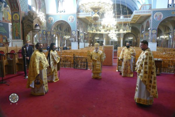 Φέτος, λόγω των ιδιάζουσων συνθηκών, ο Πανιερώτατος προέστη ως είθισται της Πρωτοχρονιάτικης Θείας Λειτουργίας στον Μητροπολιτικό Ιερό Ναό του Αγίου Γεωργίου στο Παραλίμνι, με τη συμμετοχή περιορισμένου αριθμού κληρικών και χωρίς την παρουσία πιστών εντός του ναού αφού αυτή απαγορεύεται με βάση το σχετικό διάταγμα.