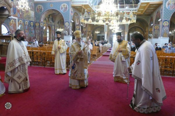 Της Θείας Λειτουργίας στον Μητροπολιτικό Ναό του Αγίου Γεωργίου, προέστη ο Πανιερώτατος Μητροπολίτης Κωνσταντίας και Αμμοχώστου πλαισιούμενος από τον παρεπιδημούντα εν Κύπρω, αιδ/το Πρωτ. Ιωάννη Λάμπρου, ιερατικώς προϊστάμενο του Ιερού Ναού Αγίου Ελευθερίου Κάτω Πατησίων της Ιεράς Αρχιεπισκοπής Αθηνών, τον αιδ/το Πρωτ. Ηρακλείδιο Ξιούρο και τους Διακόνους της Μητροπόλεως και του ναού Επιφάνιο και Μάριο.