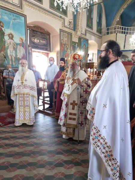 Στην πανηγυρίζουσα Ιερά Μονή Τιμίου Προδρόμου Μέσα Ποταμού, προεξήρχε τως ιερών ακολουθίων ο Θεοφιλέστατος Επίσκοπος Νεαπόλεως κ. Πορφύριος, ενώ στην κοινότητα Δύμες του πανηγυρικού Εσπερινό, χοροστάτησε ο Θεοφιλέστατος Επίσκοπος Αμαθούντος.