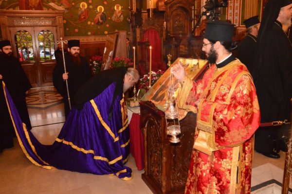 Στο ιερό βήμα παρέστησαν συμπροσευχόμενοι οι Θεοφιλεστάτοι Επισκόποι Αμαθούντος κ. Νικόλαος και Νεαπόλεως κ. Πορφύριος.