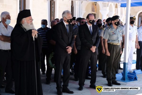 Το Εθνικό Μνημόσυνο των Πεσόντων στις μάχες της Τηλλυρίας τελέστηκε σήμερα, Κυριακή 08 Αυγούστου 2021, στον Ιερό Ναό Αγίου Ραφαήλ, Πρωτοστατούντος του Πανιερώτατου Μητροπολίτη Πάφου, κ. Γεώργιου, παρουσία του Κύπριου Υπουργού Άμυνας κ. Χαράλαμπου Πετρίδη, του Υπουργού Παιδείας της Κύπρου, κ. Πρόδρομου Προδρόμου, του Αρχηγού της Κυπριακής Εθνικής Φρουράς, Αντιστράτηγου Δημόκριτου Ζερβάκη και των πολιτικών, θρησκευτικών, στρατιωτικών και τοπικών αρχών.