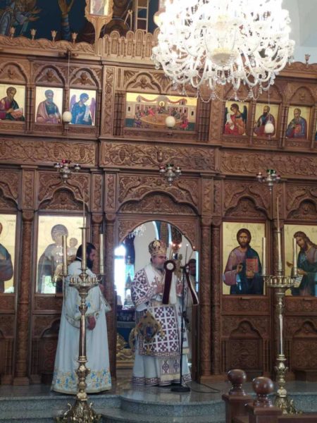 Τον οικείο Ποιμενάρχη πλαισίωσαν ο Προισταμενος του Ιερού Ναού Αρχιμανδρίτης Βαρνάβας Χρυσάνθου και ο Αρχιδιάκονος Ραφαήλ Μισιαούλης.