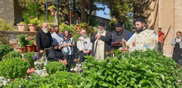 Μετά το πέρας της Θείας Λειτουργίας, ο Πανιερώτατος τέλεσε τρισάγιο στον τάφο της μακαριστής Ηγουμένης.