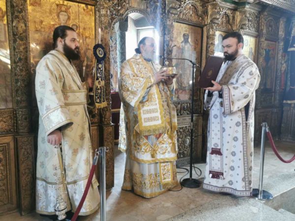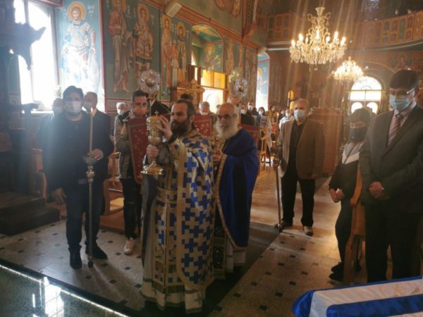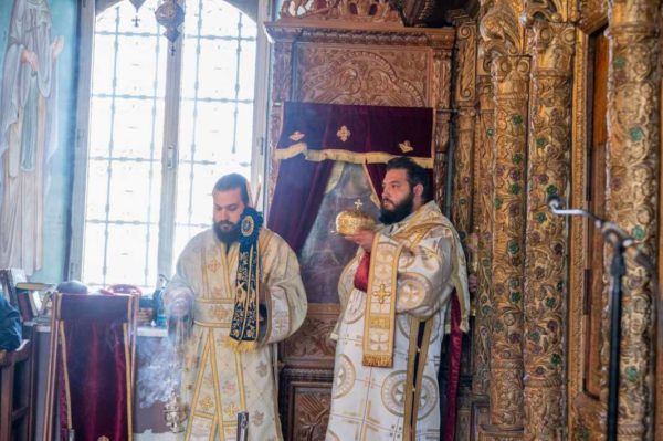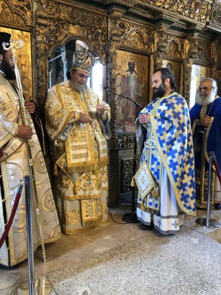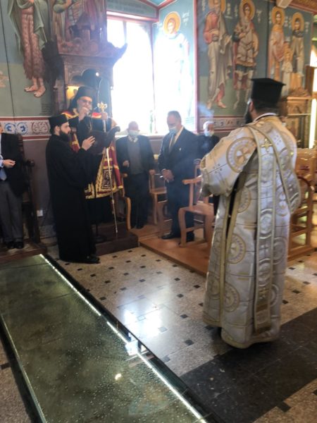 Τον Πανιερώτατο πλαισίωναν οι Οικονόμοι Νικόλαος Νυχίδης, Προϊστάμενος του Ιερού Ναού, ΚΑΙ Σαμουήλ Κουσπογένης, καθώς και ο Ιεροδιάκονος Ραφαήλ Μισιαούλης.