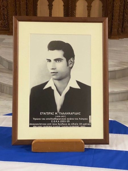 Στο τέλος του Μνημοσύνου ο Πανιερώτατος ανέγνωσε τον Επιμνημόσυνο λόγο και αναφέρθηκε στην προσωπικότητα του ήρωα Ευαγόρα Παλληκαρίδη. Υπογράμμισε την πίστη και το ήθος που είχε ο Ευαγόρας, όπως και κάθε ήρωας, ο οποίος δε λύγισε μπροστά στο θάνατο και με θάρρος και τόλμησε ομολόγησε την αφοσίωσή του στην πατρίδα.