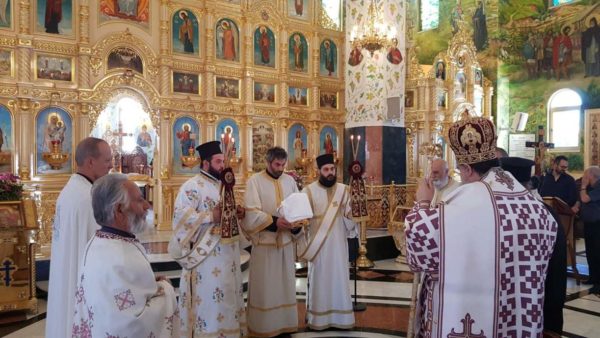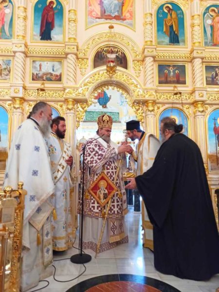 Κατά τη διάρκεια της Θείας Λειτουργίας, ο Πανιερώτατος χειροτόνησε σε διάκονο τον φοιτητή της Ιερατικής Σχολής “Απόστολος Βαρνάβας”, Σπυρίδωνα Καρατζιά εξ Ελλάδος.