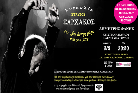 Συναυλία αφιερωμένη στον μεγάλο Έλληνα συνθέτη Σταύρο Ξαρχάκο, θα διεξαχθεί στην υπαίθρια σκηνή της Ιεράς Μητρόπολης Ταμασού & Ορεινής, την Παρασκευή 3 Σεπτεμβρίου.