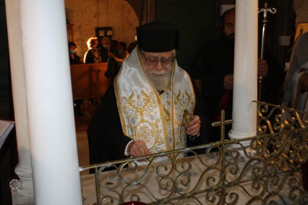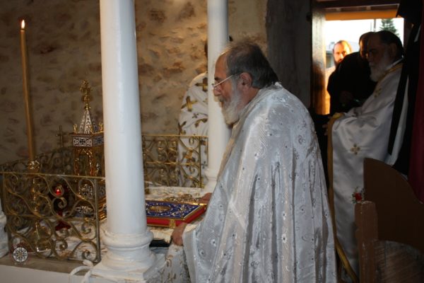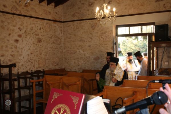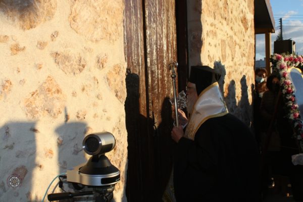 Στον σύντομο χαιρετισμό του ο Πανιερώτατος εξέφρασε την ευαρέσκειά του για την τέλεση των θυρανοιξίων του ανακαινισθέντος ιστορικού αυτού εξωκλησίου της μητροπολιτικής περιφέρειας. Η συντήρηση και ο εξωραϊσμός της εκκλησίας αυτής, επαναφέρει στη μνήμη μας τη λειτουργία του χώρου ως γυναικείας Μονής από την οποία ουσιαστικά γεννήθηκε στη σύγχρονη εποχή ο γυναικείος μοναχισμός στην Κύπρου.
