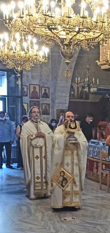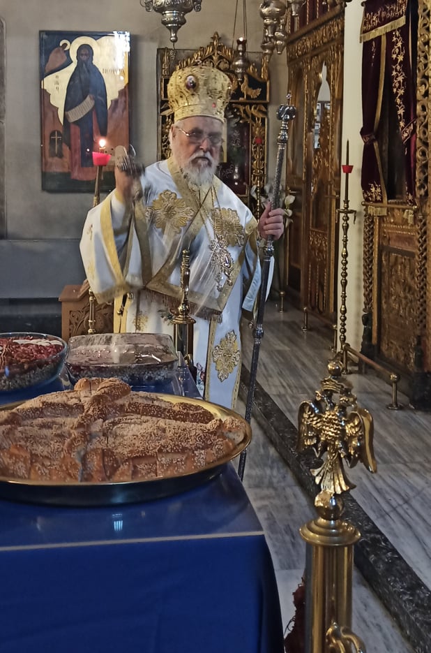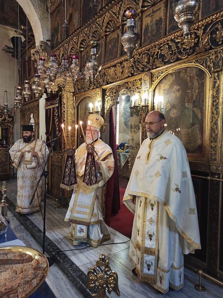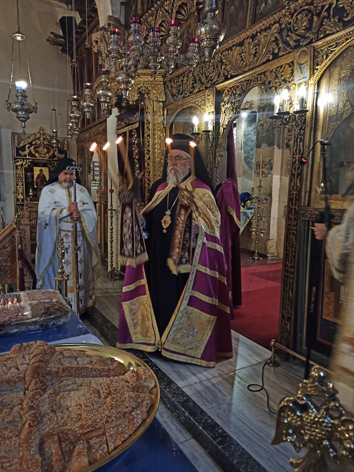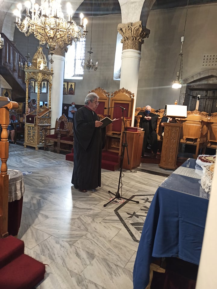 Της Θείας Λειτουργίας προεξήρχε ο Καθηγούμενος της Μονής, Επίσκοπος Χύτρων κ. Λεόντιος, πλαισιούμενος από πατέρες της Μονής και της Ιεράς Αρχιεπισκοπής.