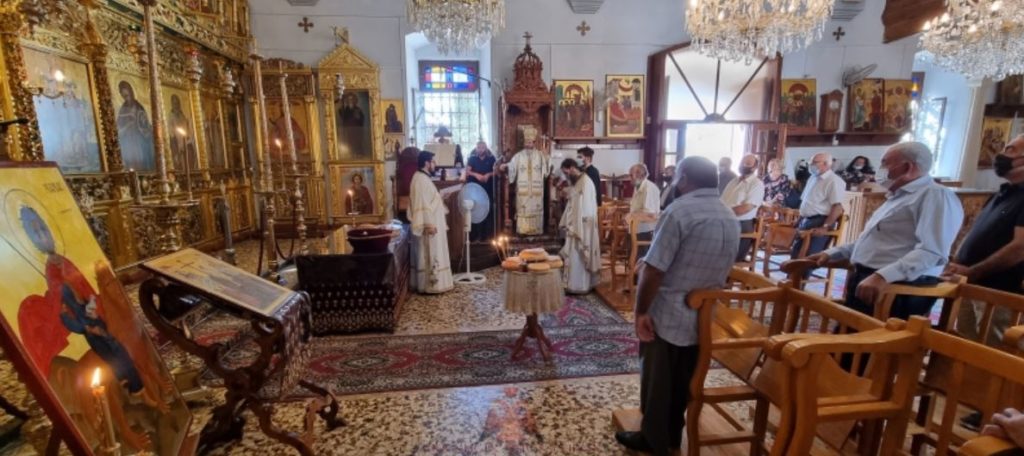 Ο Θεοφιλέστατος Επίσκοπος Μεσαορίας κ. Γρηγόριος, πλαισιούμενος από τον εφημέριο της κοινότητας Οικονόμο π. Νικόλαο Βρακά και το Διάκονο π. Ανδρέα Ματέι, χοροστάτησε στον Όρθρο και προέστη της θείας Λειτουργίας.