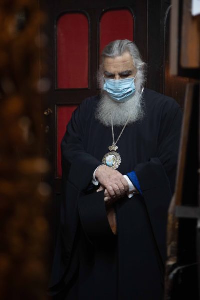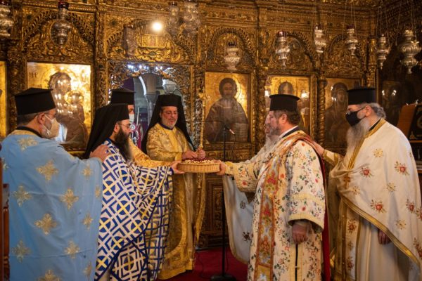Πριν την απόλυση, μαζί με τους υπόλοιπους κληρικούς, ανέπεμψαν δέηση και ευλόγησε τα προευτρεπισθέντα κόλλυβα για την εορτή.